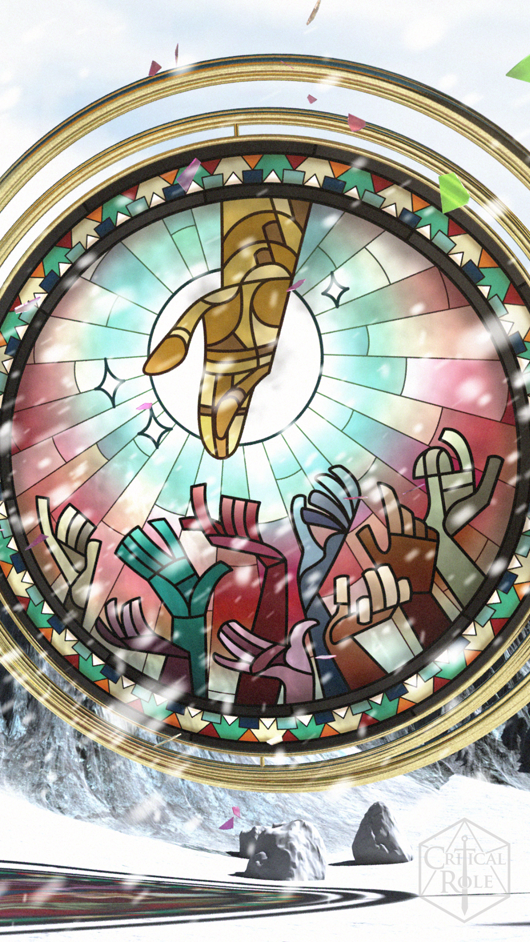 You might recognize these wallpapers from Exandria Unlimited‘s Opening Title. The gorgeous stained glass art is by Joanna Johnen and the 3D Environments were created by Christian Brown.